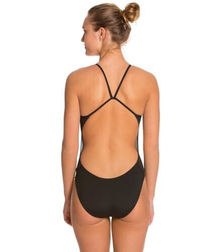 Nike Swim Women's Standard Laser Stripe Crossback One Piece Swimsuit, Large, Black, Large