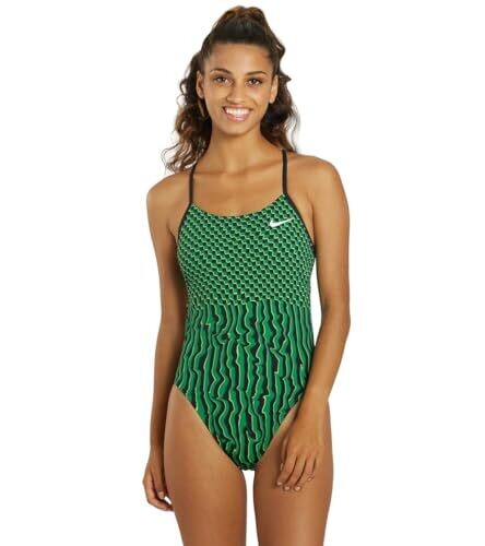Nike Women's Drippy Check Cut Out One Piece Swimsuit 36, Court Green