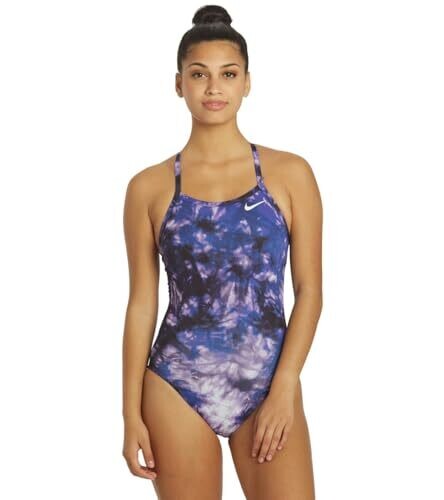 Nike Women's Hydrastrong Tie-Dye Crossback One Piece Swimsuit Court Purple 36