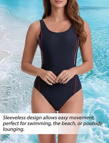 Seaur Athletic One Piece Swimsuit Sleeveless U Back High Cut Padded Chlorine Resistant