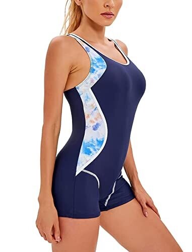 • Seaur One Piece Bathing Suit Women Athletic Color Block Swimsuit Navy Blue