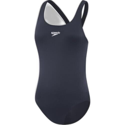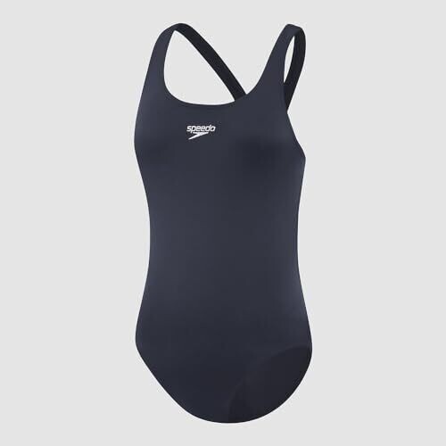 - Chic Speedo Navy color with a recognizable brand crest for everyday pool confidence.