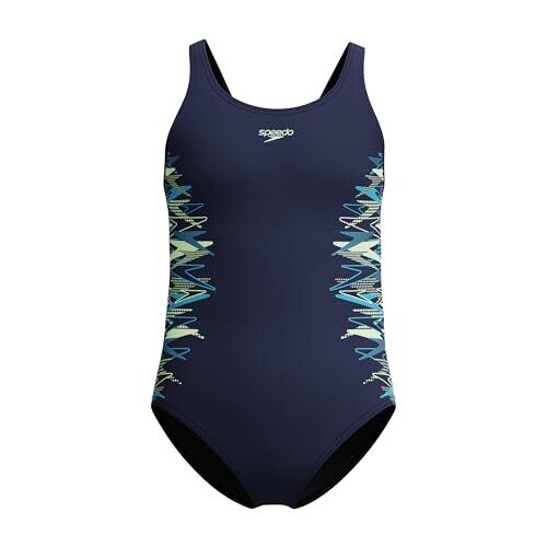 • Speedo Girl's Thinstrap Muscleback One Piece Swimsuit, 9-10 Years, Peacoat/Clover