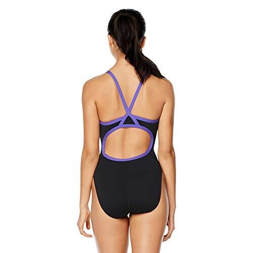 Speedo Women's One Piece Endurance+ Flyback Solid Swimsuit Team Colors Black/Purple