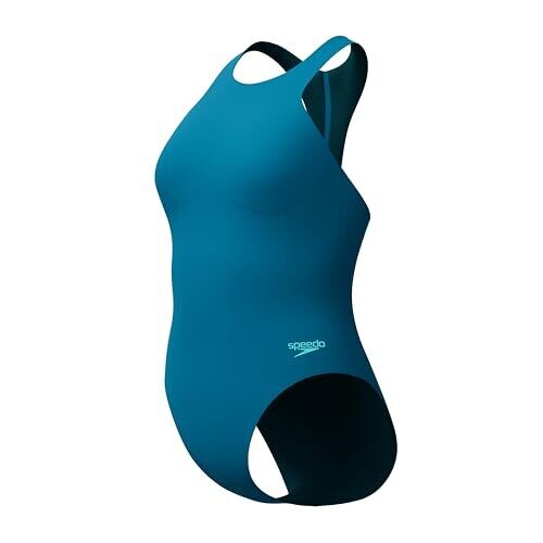 Speedo Women's Racer Zip Swimsuit with Built-In Swim Bra, Dark Teal, 14