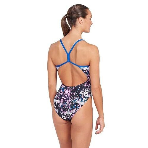 • Vibrant multi-colour Sprintback swimsuit designed for women, combining eye-catching style with performance.