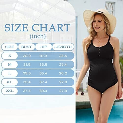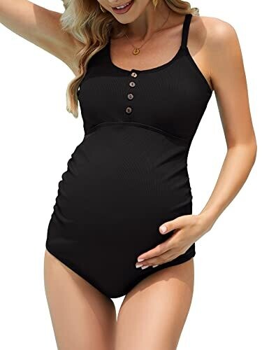 • American Trends Maternity Button-Down Swimsuit Cross-Back Swimwear, Black, Small