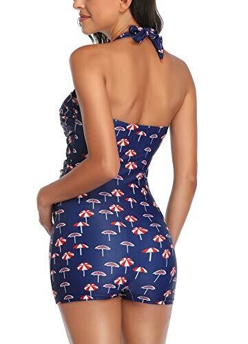 Eastelegant Maternity One Piece Swimwear Retro Halter Swimsuit with Boyleg Bathing Suit, Umbrella, Large