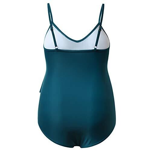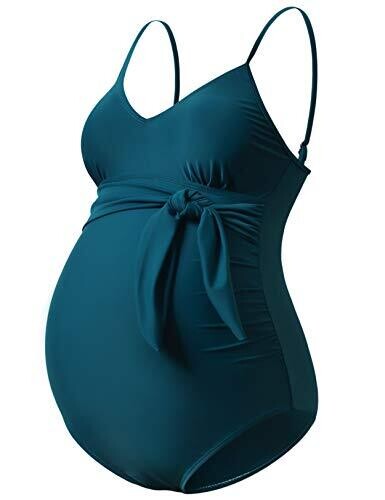 Ginkana Maternity Swimsuit Tie Front V Neck Monokini Swimwear,Teal,M