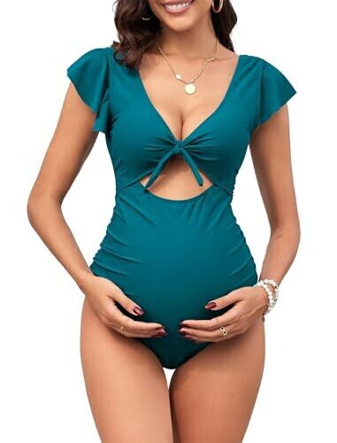 Zaful Maternity Swimsuit Tie Front Tummy Control Swimsuit, Crystal Teal Medium
