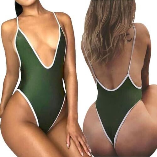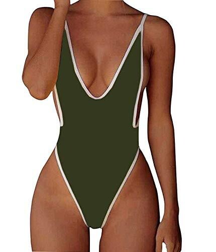 • Allurelove Monokini Deep V One Piece Backless Swimwear (Army Green, Small)