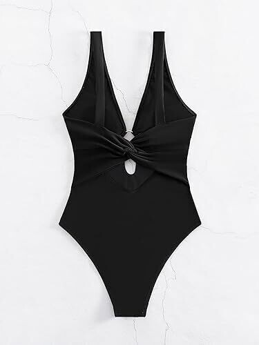 • Alpha Women's Twist Back Ring Cut Out Plunge Neck One Piece Swimsuit (AU, Alpha, Medium, Regular, Regular, Black)