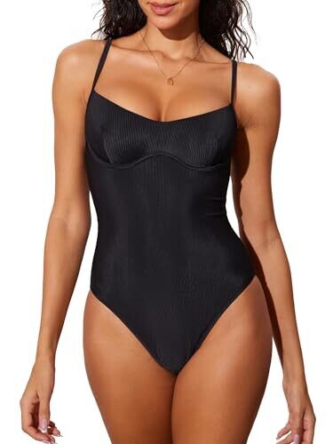 Be the first to review “Dobreva One-Piece Swimsuit Underwire Ribbed V-Neck Straps, Black, Medium” Cancel reply