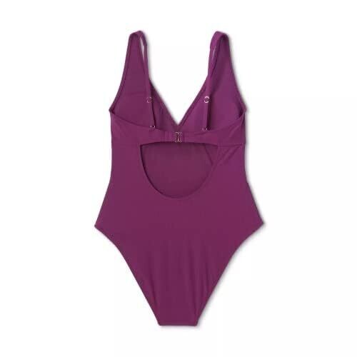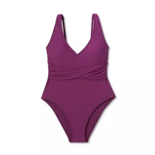 • Shade & Shore Women's Ribbed Plunge Twist-Front One Piece Swimsuit -, Large, Purple