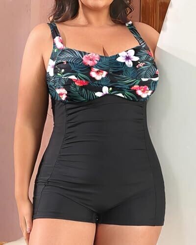 - Elegant retro-inspired one-piece design with tummy-slimming ruching for a flattering silhouette.