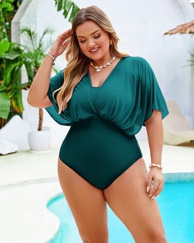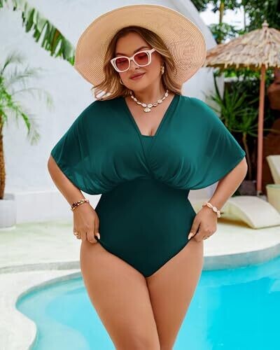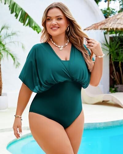 • Jolefille Plus-Size Swimsuit for Women Tummy Control Mesh-Sleeves (X-Large)