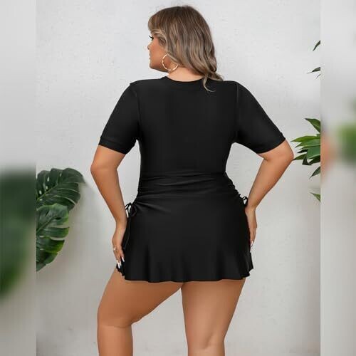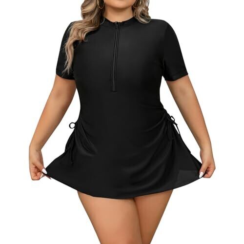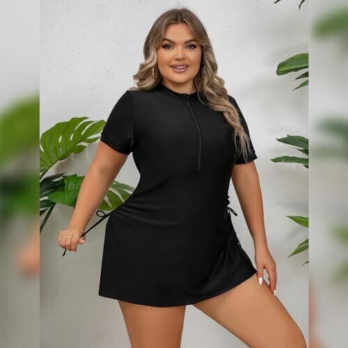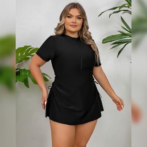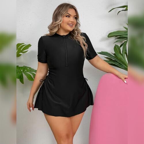 1 piece swimsuit, 1 piece swim dress, and 1 piece shorts. Variations include long sleeves, short sleeves, sleeveless, and round neck, with chest pads and zipper closure; floral print, color block, and solid color options are available. Plus-size design features a front zipper with a zipper garage to reduce skin irritation; a half or 1-2 zipper configuration is described for front access. Made to accommodate activities such as seaside, beach, pool, holidays, wakeboarding, paddle sports, and water yoga; suitable for indoor or outdoor water activities. Fabric is described as soft, lightweight, and stretchy with 4-way stretch; designed to be close-fitting, resistant to deformation, fading, or shrinking after washing, and comfortable on the skin. |
