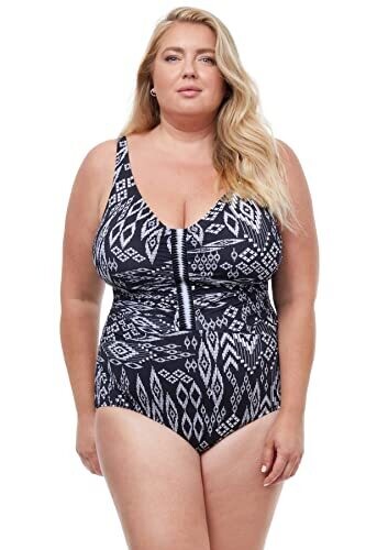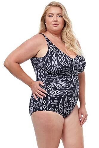 Profile By Gottex Peruvian Nights Full Figure V-Neck Swim One Piece, Black White, 22W