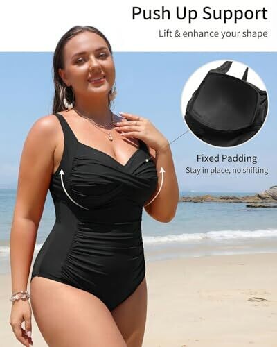 • Yonique Plus Size One-Piece Swimsuits Twist-Front Ruched Swimwear Black 22 Plus