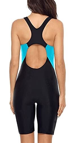 • Beautyin Women's Boyleg One Piece Swimsuit Racerback, Blue/Black, Medium