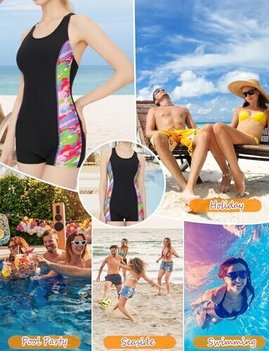 • Feoya Women Racerback One Piece Bathing Suit Competition Modest Boyleg Swimwear