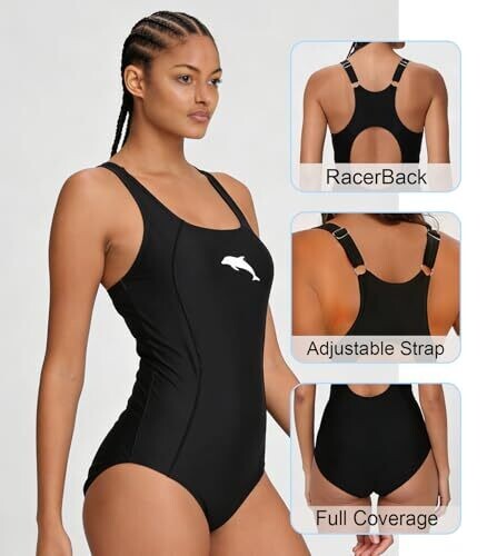 Elevate your poolside look with a sleek, performance-driven one-piece designed for active women. Adjustable straps, racerback, built-in bra, full-coverage bottoms, and quick-dry, chlorine-resistant fabric offer comfort, support, and UPF 50+ protection for water and sun.