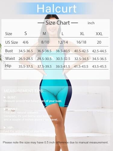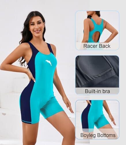 • Halcurt Women's Boyleg Swimsuit, Racerback Athletic, Navy/Light Blue2, Medium