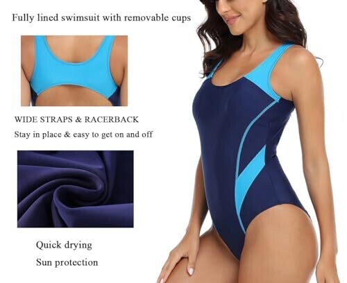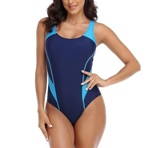 • Miccina Women’s One Piece Swimsuit Athletic Bathing Suit Modest Racerback Swimwear for Women, 1-Navy/Blue, Medium