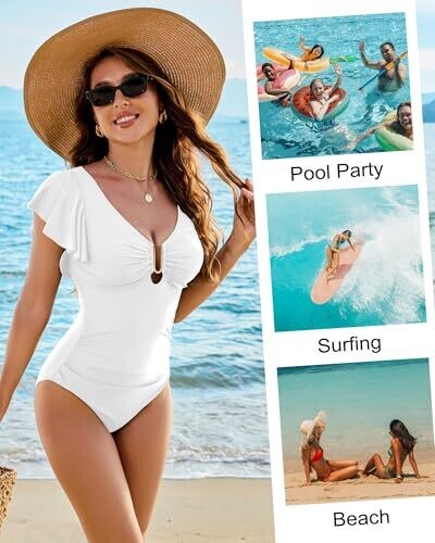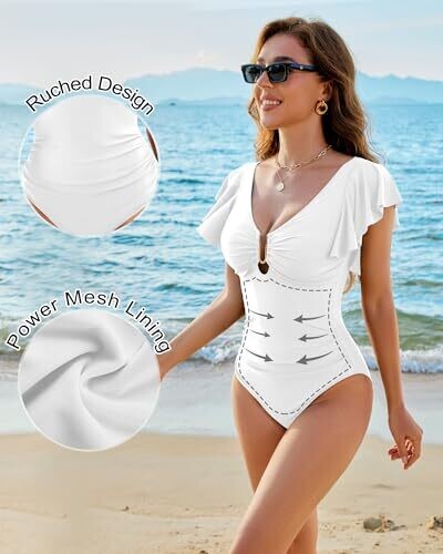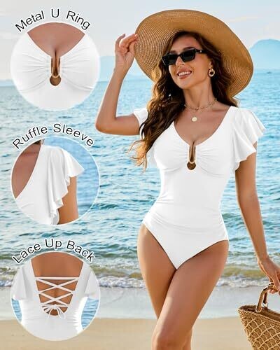 DaiLiWei's one piece swimsuit offers tummy control for a flattering silhouette and full coverage. Features a V-neck, ruched waist, lace-up back, and feminine ruffle details for comfortable, adjustable fit and a chic, lengthening look at the beach.