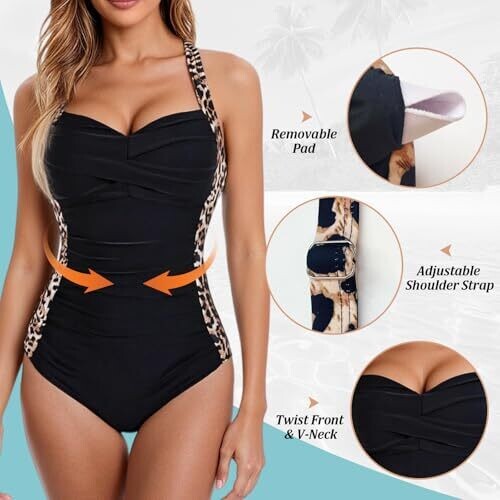 Fiohiros Tummy Control Swimsuit, One-Piece with Detachable Chest Pads