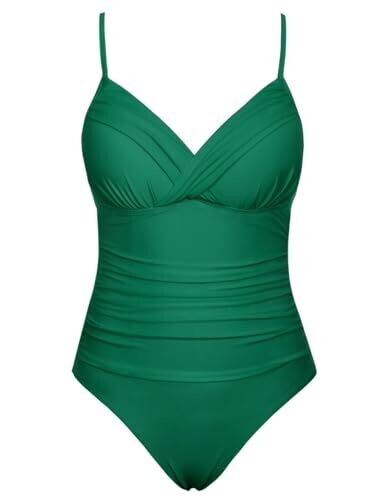 Maiableau Women Tummy Control Swimsuit Ruched Mesh Swimwear (Army Green) M