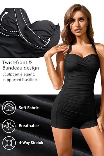 • Tempt Me Women Tummy Control One Piece Swimsuits with Shorts Boyleg Halter